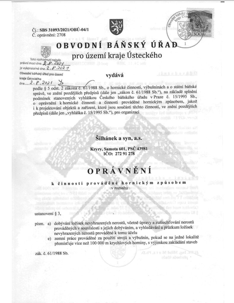 Investor: HOLCIM Česko a.s. Popis: Odtěžení, přesun a uložení skrývkové zeminy na vzdálenost 1000 –